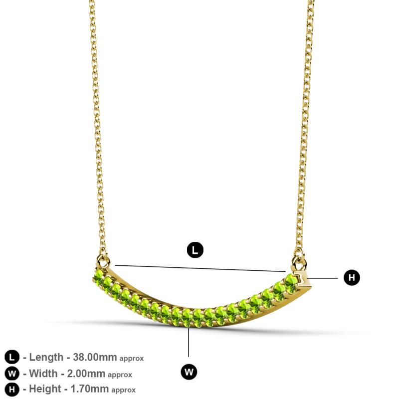 Round Peridot 3/4 ctw Womens Curved Bar Pendant Necklace 14K Yellow Gold.Included 16 Inches 14K Yellow Gold Chain More Details ...