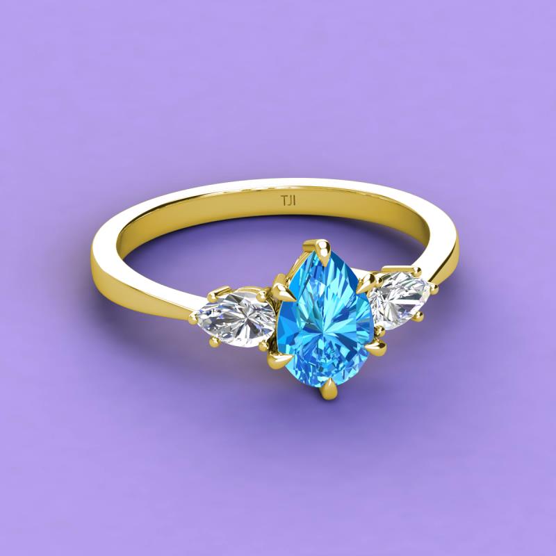 Get a glamorous Engagement Ring offering non-stop sparkle with Pear Shape Blue Topaz and Diamond on the sides making for a splendid finish and design. A beautiful ring is full of style, beauty, and grace that she will never want to take off.
