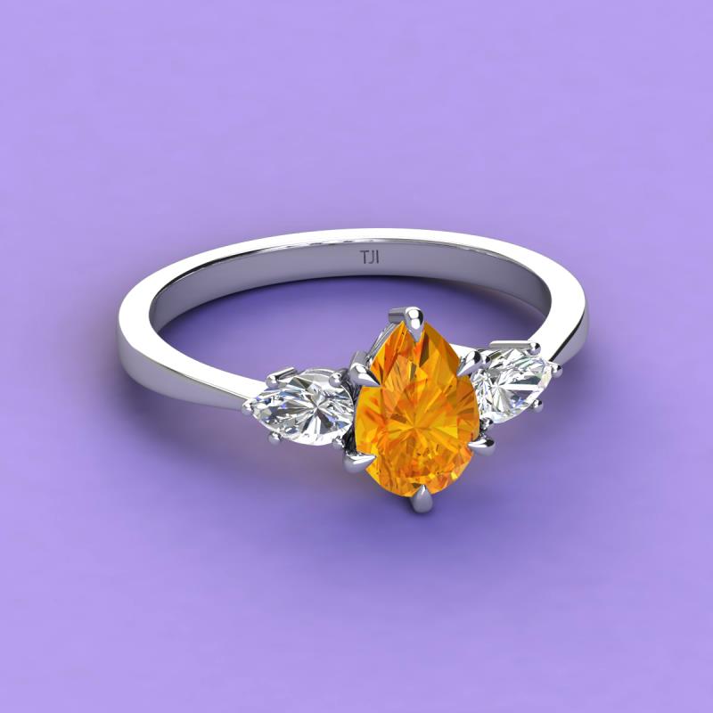 1.60 ctw Citrine Pear Shape (9x7 mm) accented Natural Diamond Three Stone Women Engagement Ring using Tiger Claw Setting in Platinum More Details ...