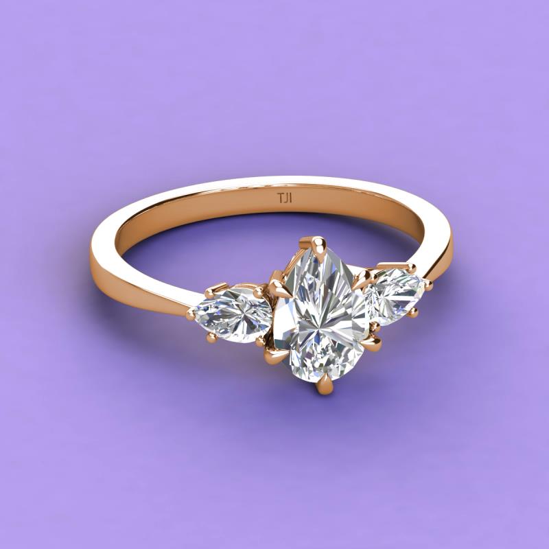 3.60 ctw GIA Certified Natural Diamond Pear Shape (9x7 mm) accented Natural Diamond Three Stone Women Engagement Ring using Tiger Claw Setting in 18K Rose Gold More Details ...