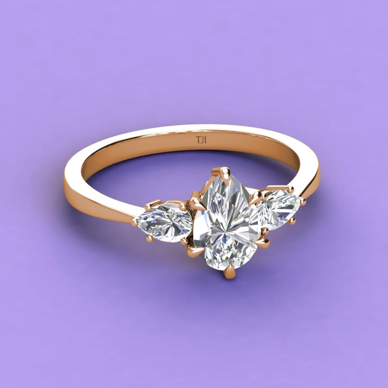 1.70 ctw Moissanite Pear Shape (9x7 mm) accented Natural Diamond Three Stone Women Engagement Ring using Tiger Claw Setting in 18K Rose Gold More Details ...