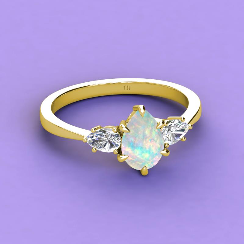 1.07 ctw Opal Pear Shape (9x7 mm) accented Natural Diamond Three Stone Women Engagement Ring using Tiger Claw Setting in 18K Yellow Gold More Details ...