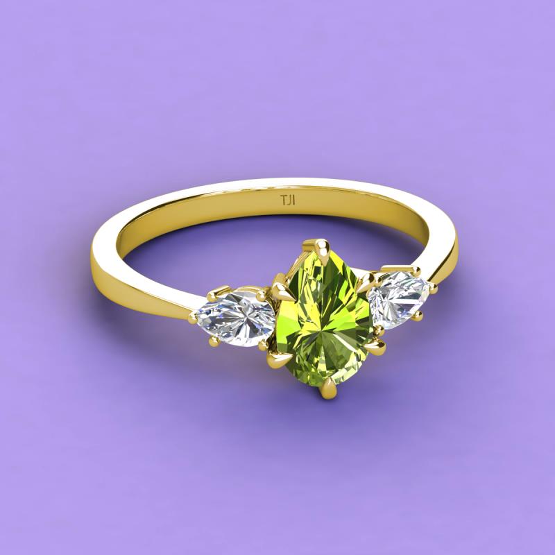 Get a glamorous Engagement Ring offering non-stop sparkle with Pear Shape Peridot and Diamond on the sides making for a splendid finish and design. A beautiful ring is full of style, beauty, and grace that she will never want to take off.