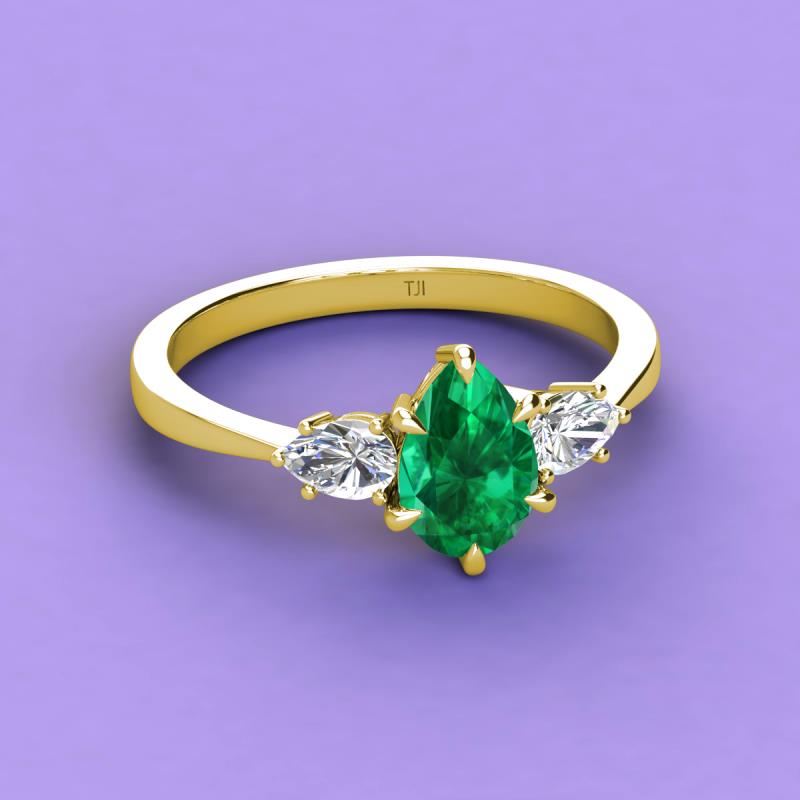 Get a glamorous Engagement Ring offering non-stop sparkle with Pear Shape Emerald and Lab Grown Diamond on the sides making for a splendid finish and design. A beautiful ring is full of style, beauty, and grace that she will never want to take off.