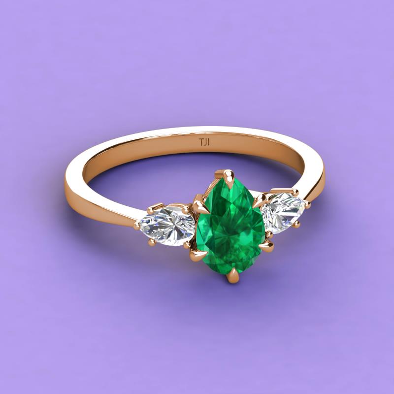 Get a glamorous Engagement Ring offering non-stop sparkle with Pear Shape Emerald and Lab Grown Diamond on the sides making for a splendid finish and design. A beautiful ring is full of style, beauty, and grace that she will never want to take off.