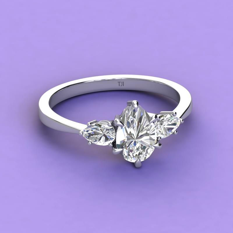 Get a glamorous Engagement Ring offering non-stop sparkle with Pear Shape Forever One Moissanite and Lab Grown Diamond on the sides making for a splendid finish and design. A beautiful ring is full of style, beauty, and grace that she will never want to take off.