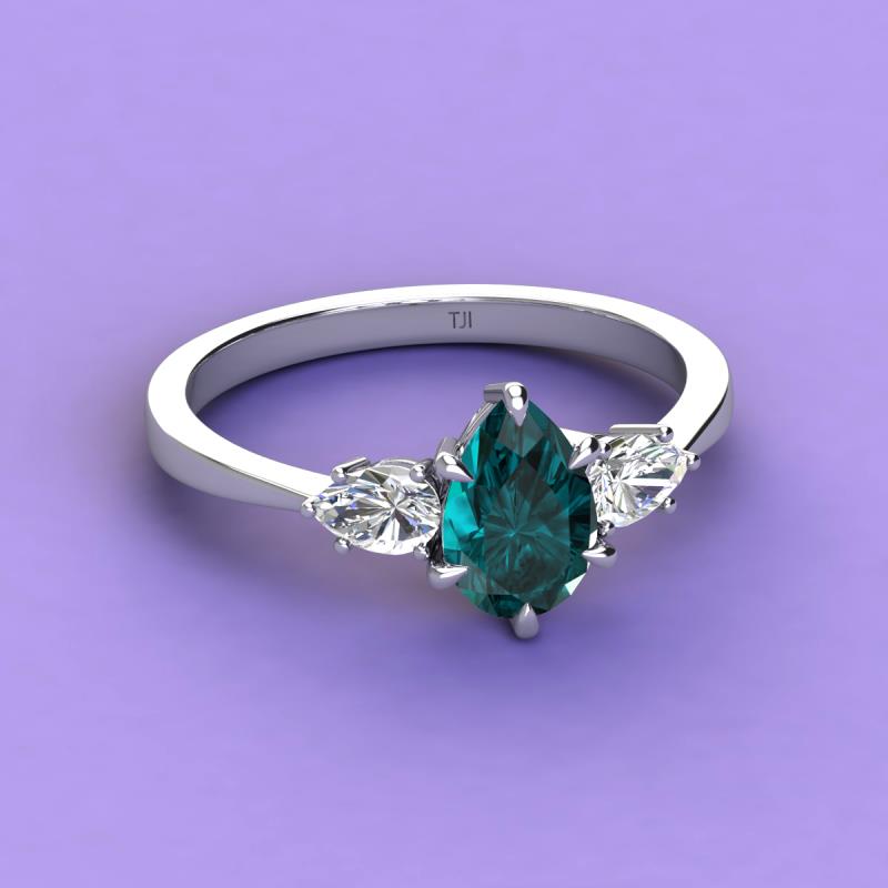 Pear Shape (9x6 mm) London Blue Topaz and Lab Grown Diamond 2.05 ctw Tiger Claw Set Six Prong Women Three Stone Engagement Ring Platinum More Details ...