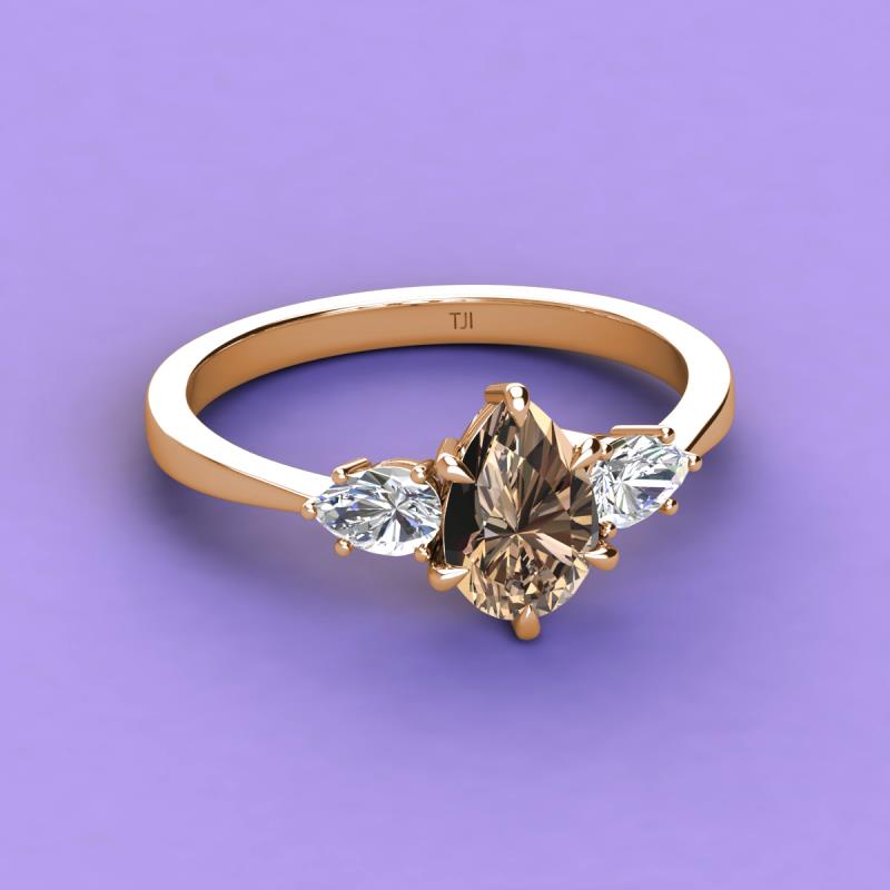 Get a glamorous Engagement Ring offering non-stop sparkle with Pear Shape Smoky Quartz and Lab Grown Diamond on the sides making for a splendid finish and design. A beautiful ring is full of style, beauty, and grace that she will never want to take off.