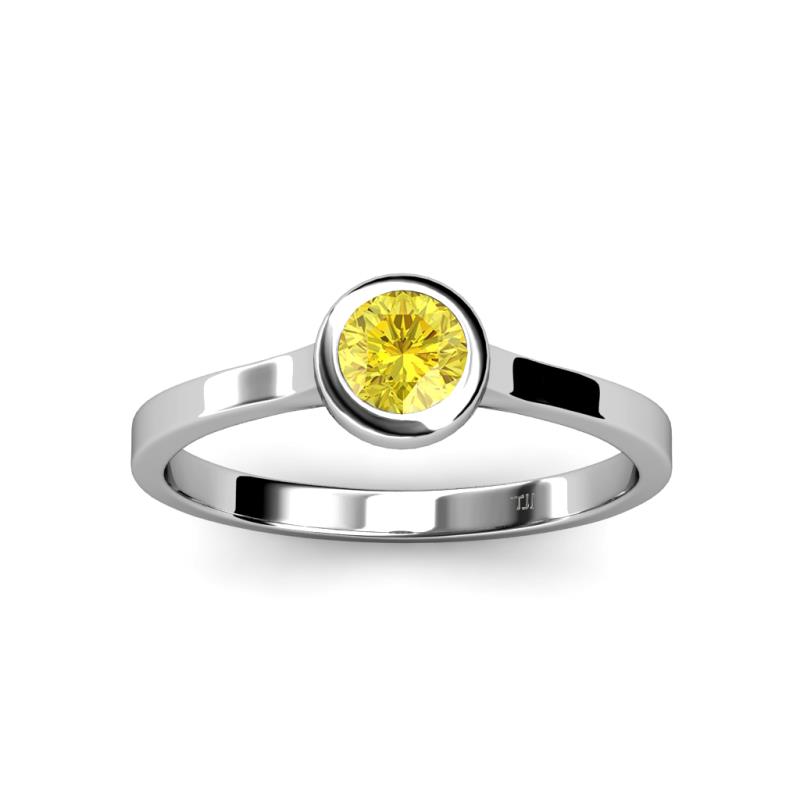 Simple yet stylish, this beautiful Solitaire Ring features a Center Round Yellow Sapphire secured with Bezel setting giving it a mix of color and sophistication.