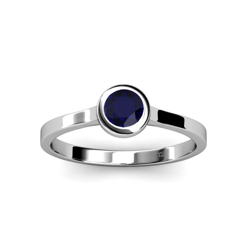 0.70 ct Floating Blue Sapphire Round (5.00 mm) Bezel set Solitaire Engagement Ring in 14K White Gold. More Details ...