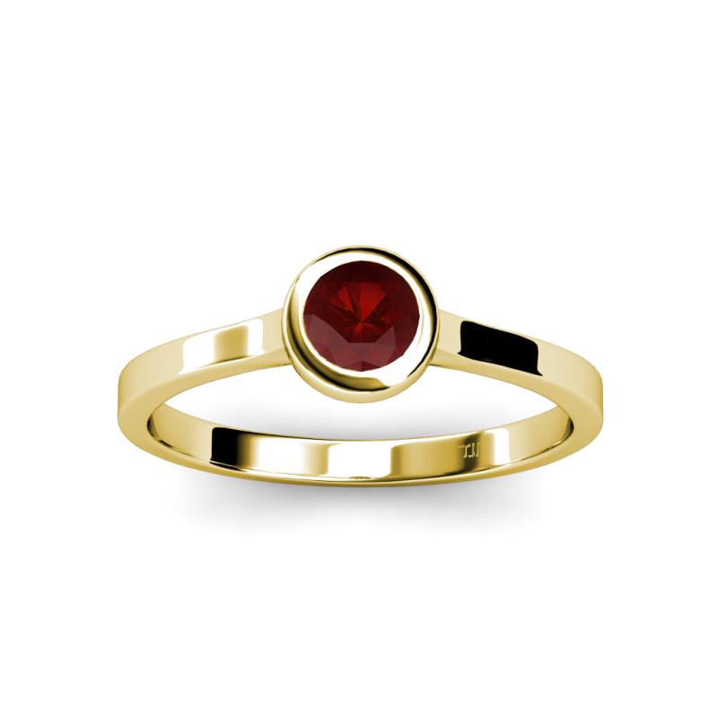 0.63 ct Floating Red Garnet Round (5.00 mm) Bezel set Solitaire Engagement Ring in 18K Yellow Gold. More Details ...