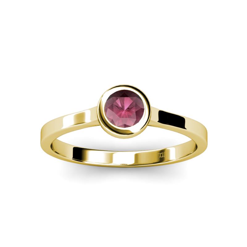 0.50 ct Floating Rhodolite Garnet Round (5.00 mm) Bezel set Solitaire Engagement Ring in 18K Yellow Gold. More Details ...