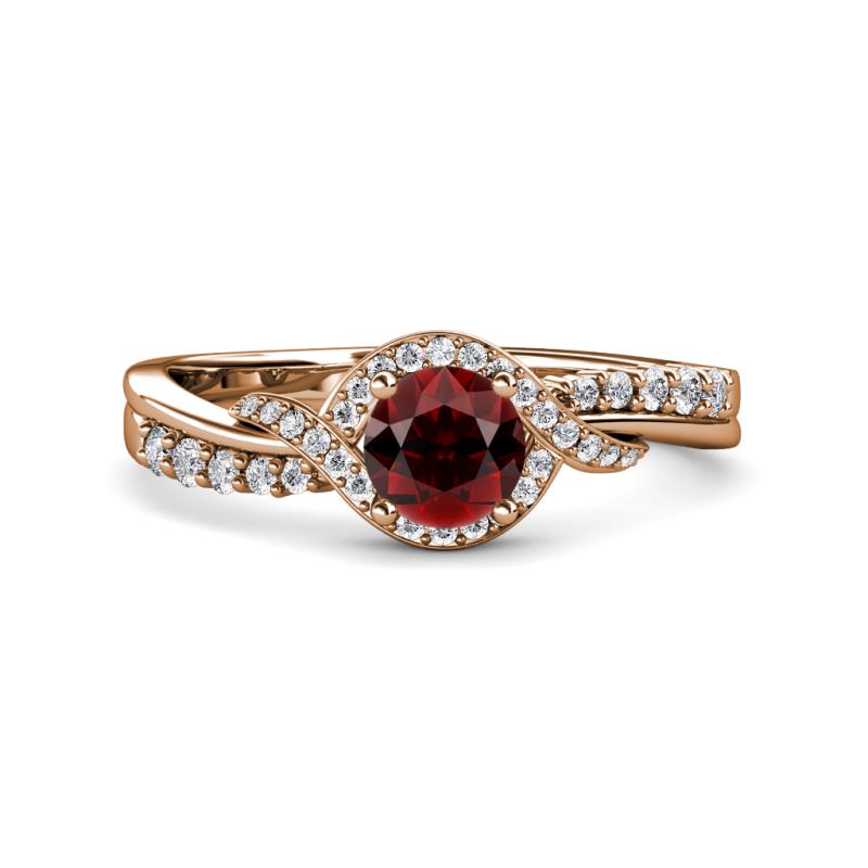 1 1/4 ctw Round Red Garnet and Diamond Bypass Womens Engagement Ring 14K Rose Gold More Details ...