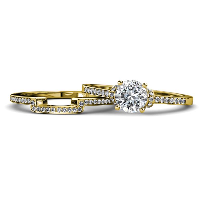 Diamond Four Prong Semi Mount Engagement Ring Setting & Matching Diamond Band 0.30 ctw 18K Yellow Gold More Details ...