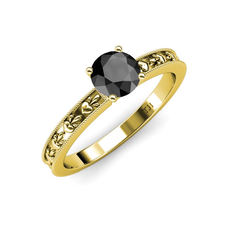 Round Black Diamond Heart Embossed Milgrain Womens Solitaire Engagement Ring 1.00 ct 14K Yellow Gold More Details ...