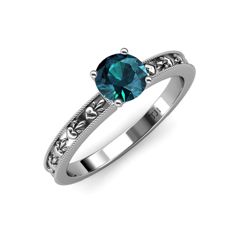 Round Blue Diamond Heart Embossed Milgrain Womens Solitaire Engagement Ring 0.90 ct 18K White Gold More Details ...