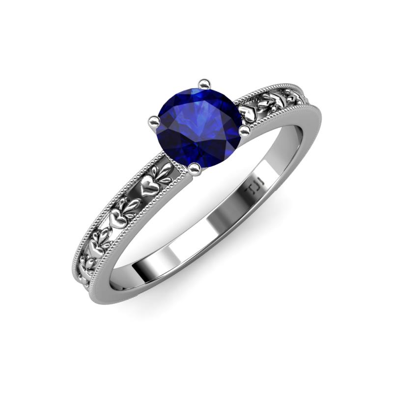 Round Blue Sapphire Heart Embossed Milgrain Womens Solitaire Engagement Ring 0.96 ct 14K White Gold More Details ...