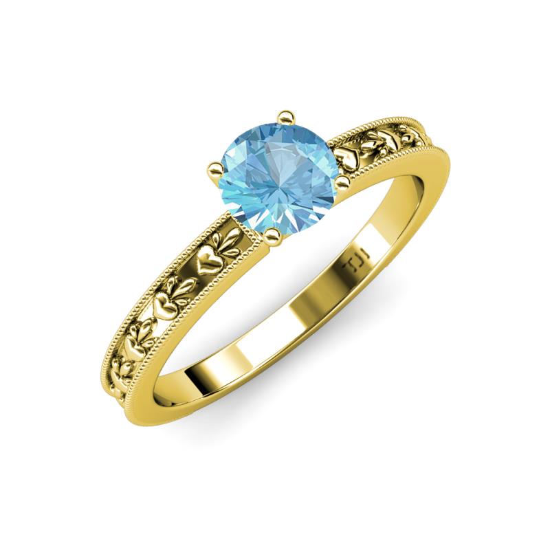 Round Blue Topaz Heart Embossed Milgrain Womens Solitaire Engagement Ring 0.95 ct 14K Yellow Gold More Details ...