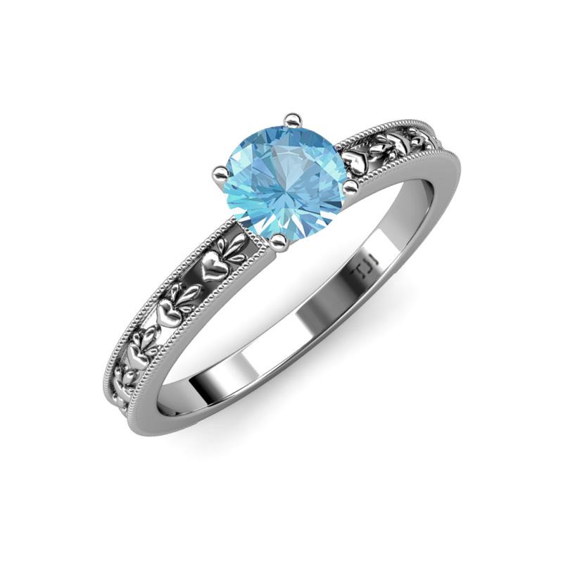 Round Blue Topaz Heart Embossed Milgrain Womens Solitaire Engagement Ring 0.95 ct 18K White Gold More Details ...