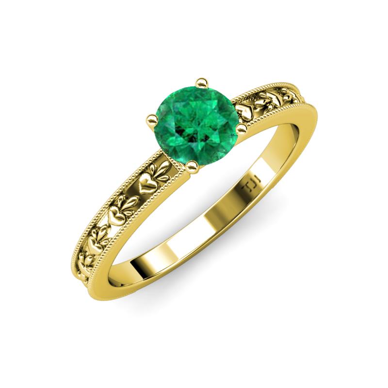 Round Emerald Heart Embossed Milgrain Womens Solitaire Engagement Ring 0.80 ct 18K Yellow Gold More Details ...