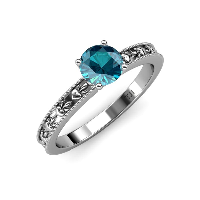 Round London Blue Topaz Heart Embossed Milgrain Womens Solitaire Engagement Ring 0.95 ct 14K White Gold More Details ...