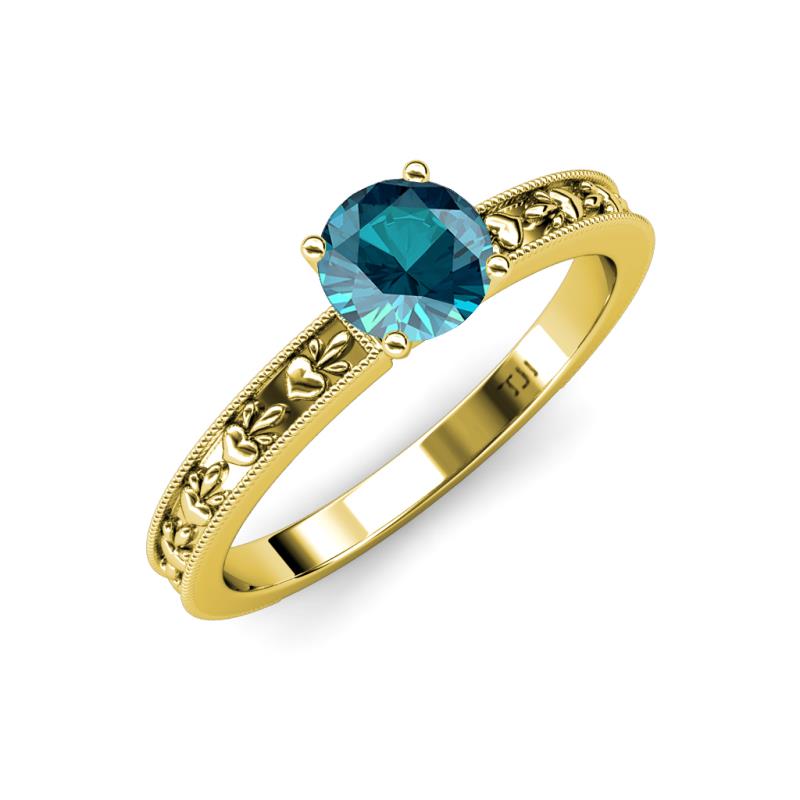 Round London Blue Topaz Heart Embossed Milgrain Womens Solitaire Engagement Ring 0.95 ct 14K Yellow Gold More Details ...