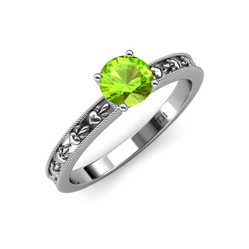 Round Peridot Heart Embossed Milgrain Womens Solitaire Engagement Ring 1.10 ct 18K White Gold More Details ...