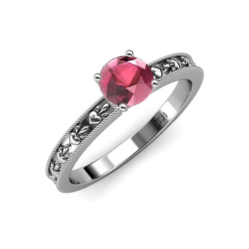 Round Rhodolite Garnet Heart Embossed Milgrain Womens Solitaire Engagement Ring 1.00 ct 14K White Gold More Details ...