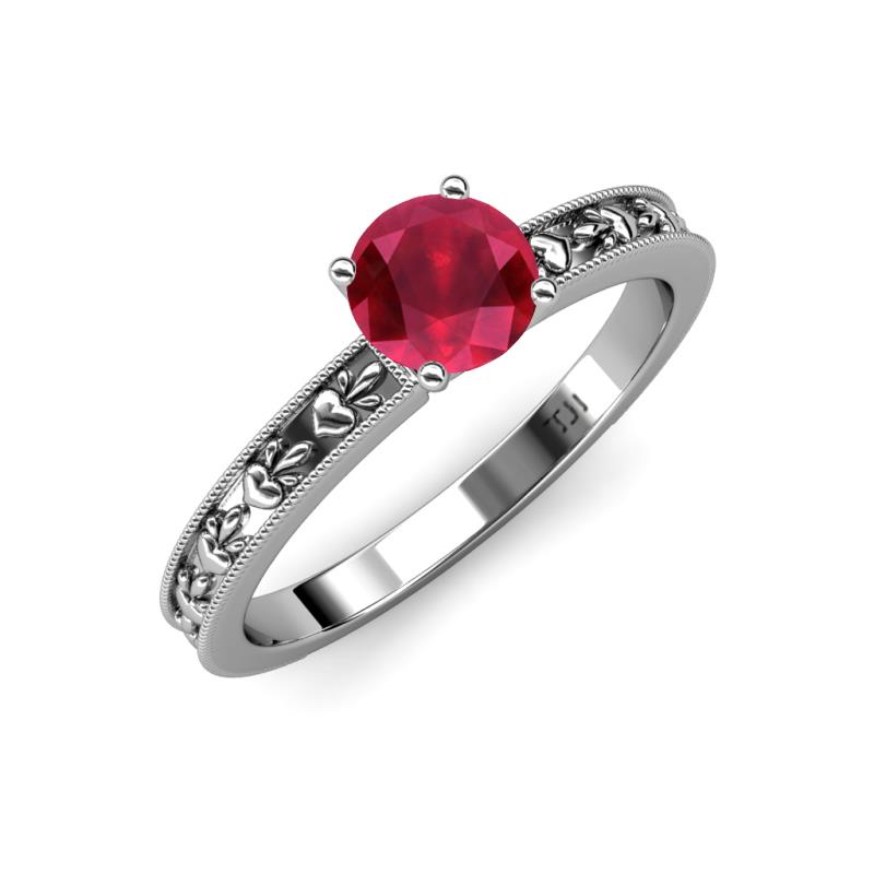 Round Ruby Heart Embossed Milgrain Womens Solitaire Engagement Ring 0.95 ct Platinum More Details ...
