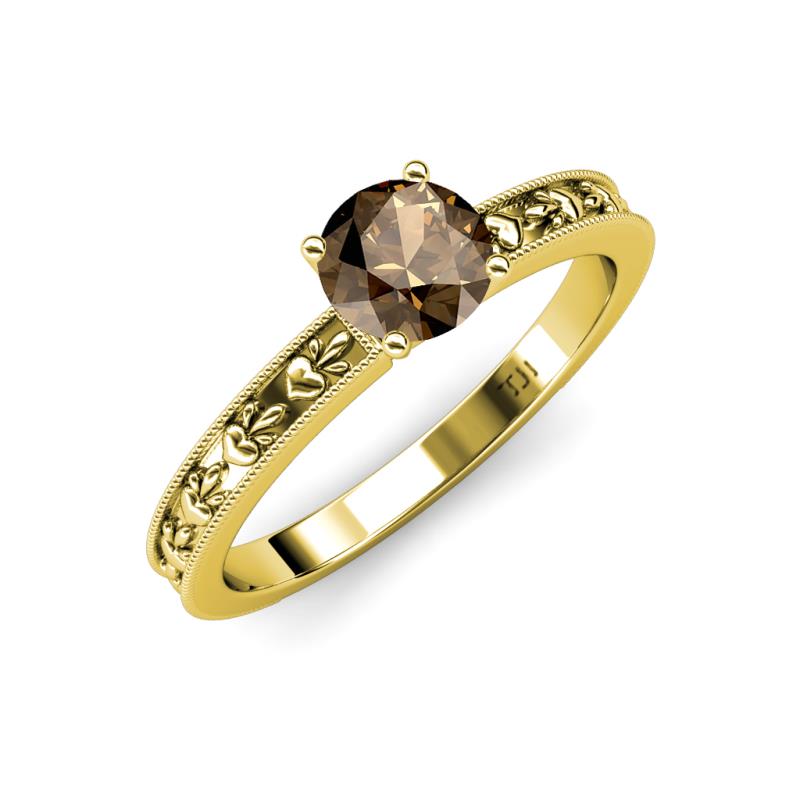 Round Smoky Quartz Heart Embossed Milgrain Womens Solitaire Engagement Ring 1.00 ct 14K Yellow Gold More Details ...