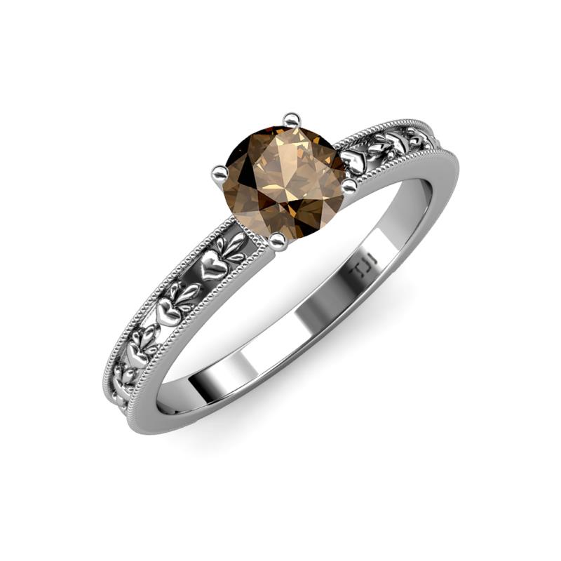 Round Smoky Quartz Heart Embossed Milgrain Womens Solitaire Engagement Ring 1.00 ct Platinum More Details ...