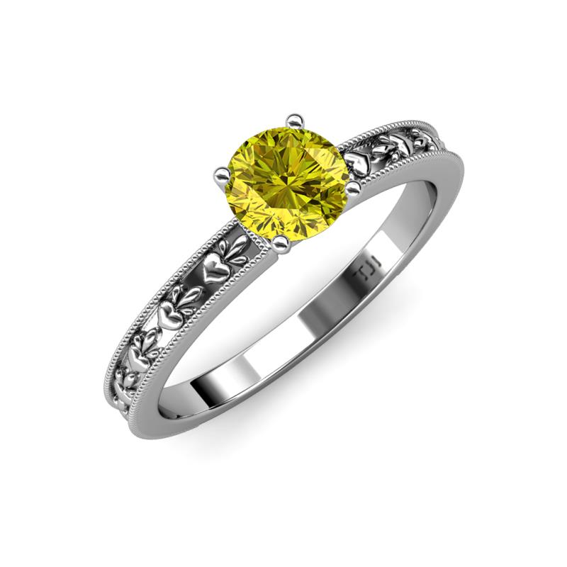 Round Yellow Diamond Heart Embossed Milgrain Womens Solitaire Engagement Ring 0.80 ct Platinum More Details ...
