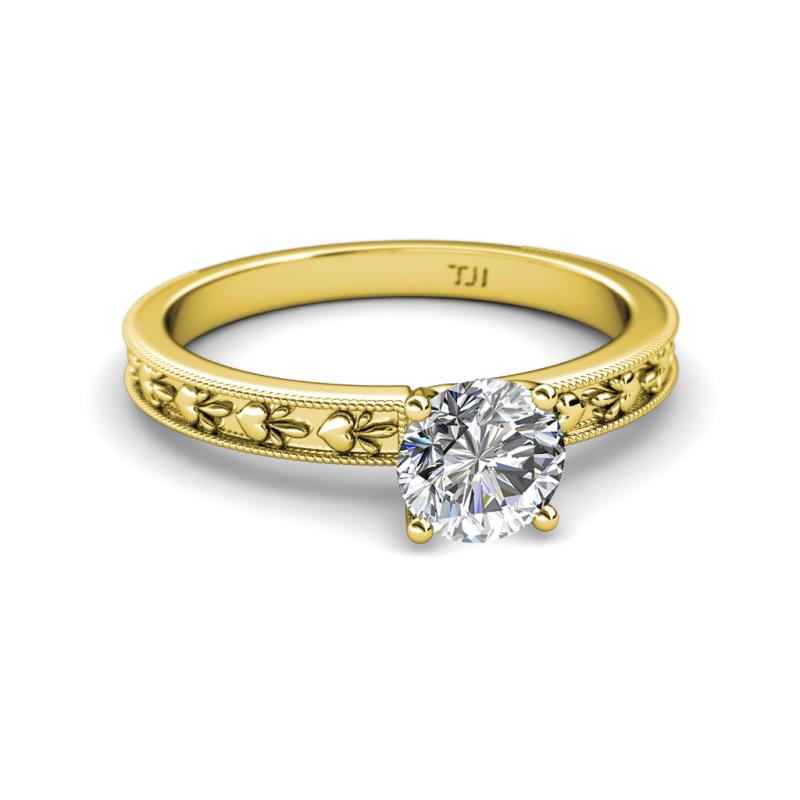 1.00 ct IGI Certified Lab Grown Diamond Round (6.50 mm) Heart Embossed Milgrain Women Solitaire Engagement Ring in 18K Yellow Gold More Details ...