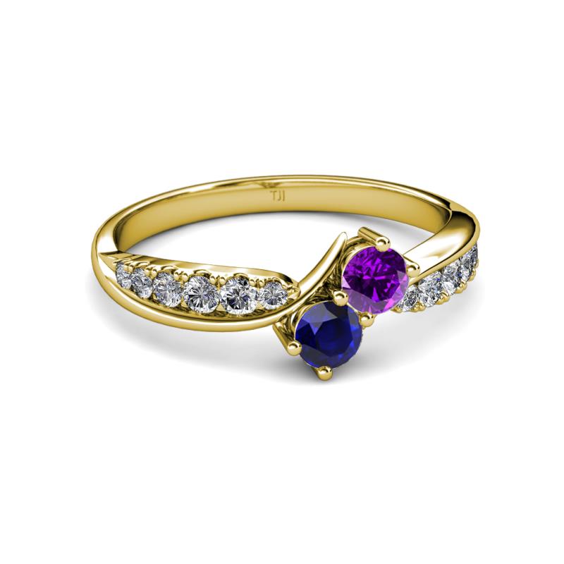 Amethyst and Blue Sapphire 2 Stone with Side Diamonds Bypass Engagement Ring 0.80 ct tw in 14K Yellow Gold. More Details ...
