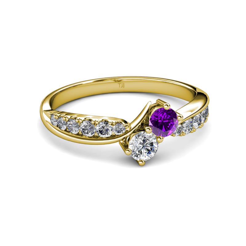 0.75 ctw Amethyst and Diamond (4.00 mm) accented Natural Diamonds Women Two Stone Bypass Engagement Ring in 14K Yellow Gold. More Details ...