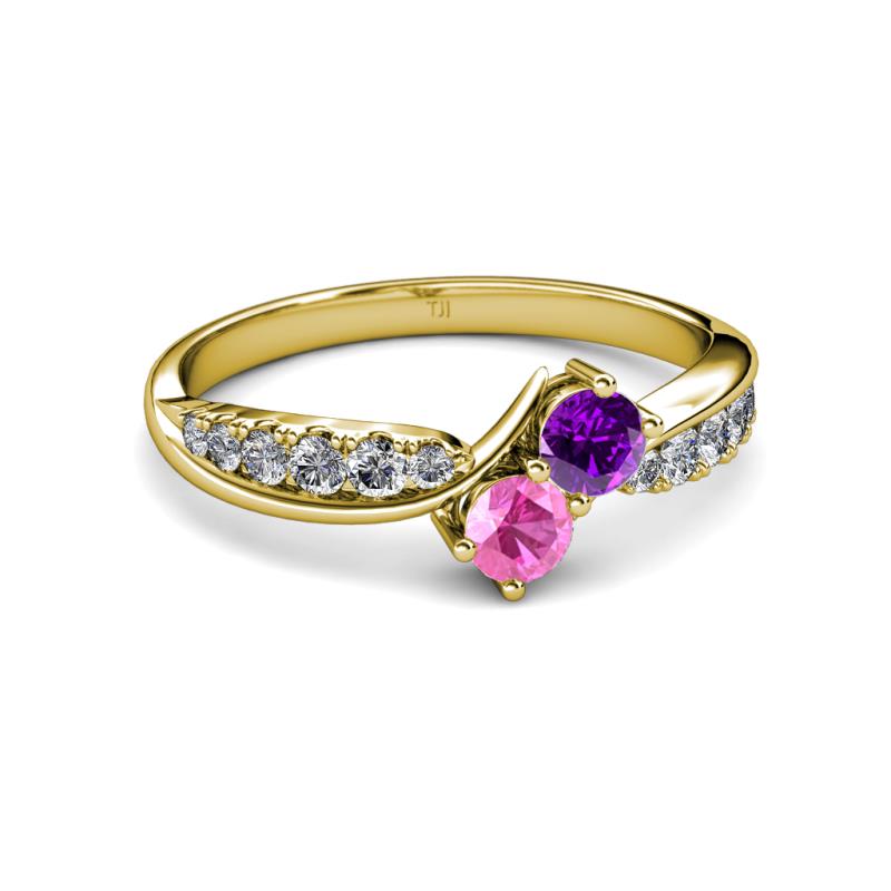 Amethyst and Pink Sapphire 2 Stone with Side Diamonds Bypass Engagement Ring 0.76 ct tw in 14K Yellow Gold. More Details ...