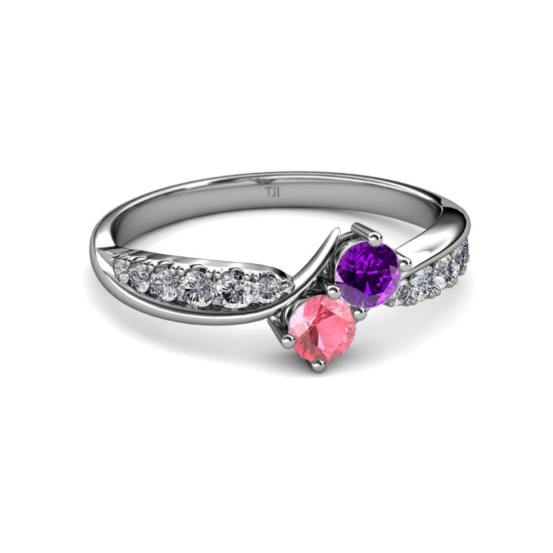 Amethyst and Pink Tourmaline 2 Stone with Side Diamonds Bypass Engagement Ring 0.70 ct tw in 14K White Gold. More Details ...