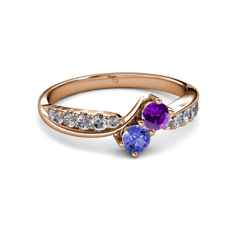 Amethyst and Tanzanite 2 Stone with Side Diamonds Bypass Engagement Ring 0.73 ct tw in 14K Rose Gold. More Details ...