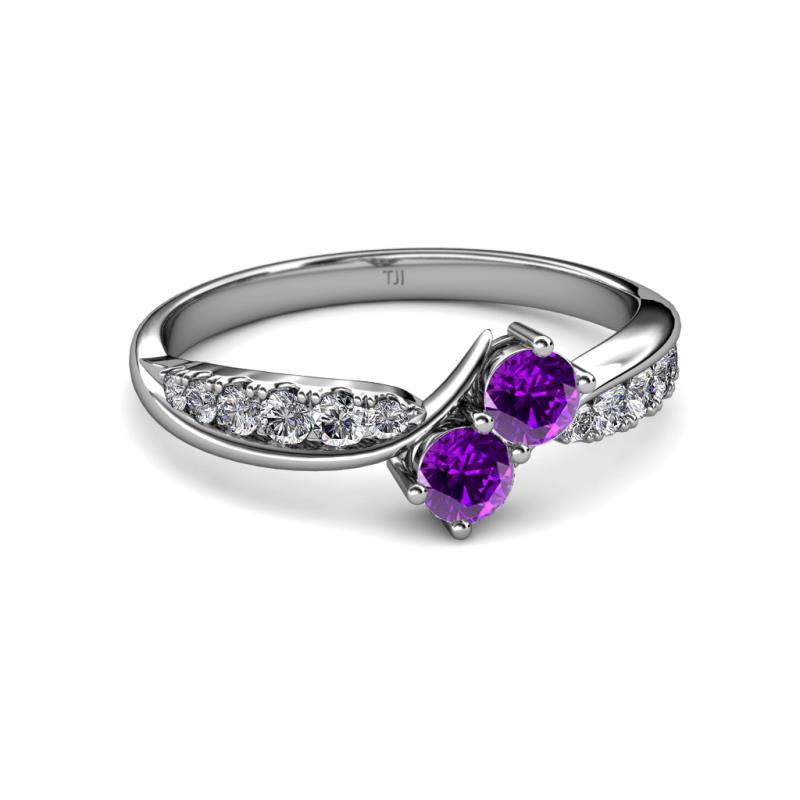 Amethyst 2 Stone with Side Diamonds Bypass Engagement Ring 0.70 ct tw in 14K White Gold. More Details ...