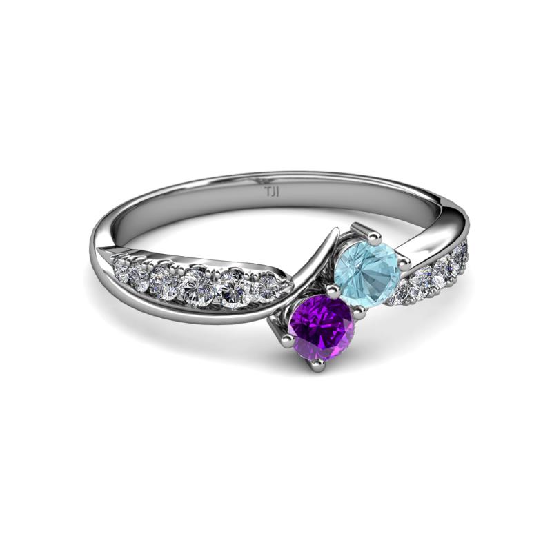 Aquamarine and Amethyst 2 Stone with Side Diamonds Bypass Engagement Ring 0.70 ct tw in 14K White Gold. More Details ...