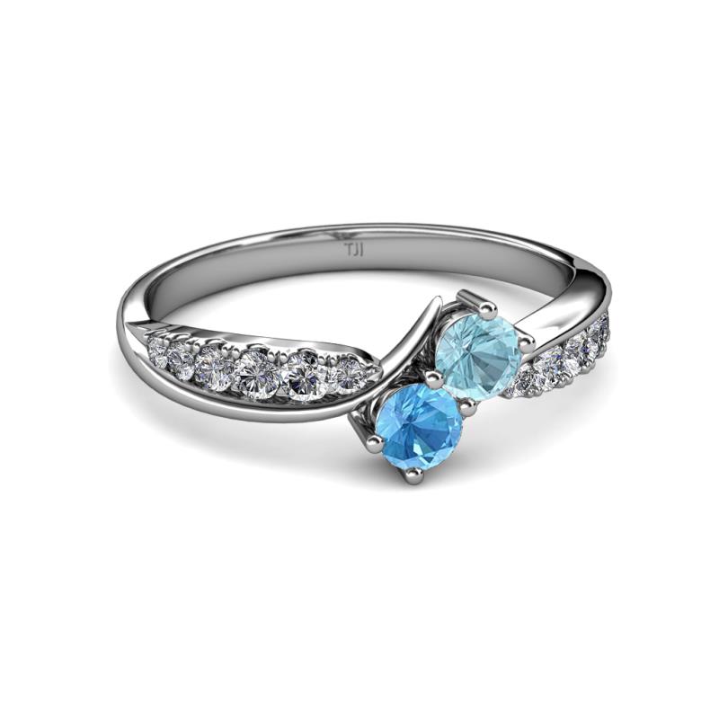 Aquamarine and Blue Topaz 2 Stone with Side Diamonds Bypass Engagement Ring 0.72 ct tw in 14K White Gold. More Details ...