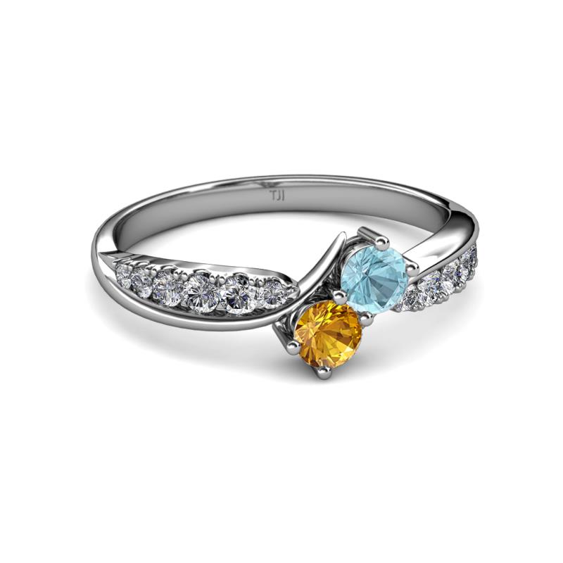 Aquamarine and Citrine 2 Stone with Side Diamonds Bypass Engagement Ring 0.70 ct tw in 14K White Gold. More Details ...