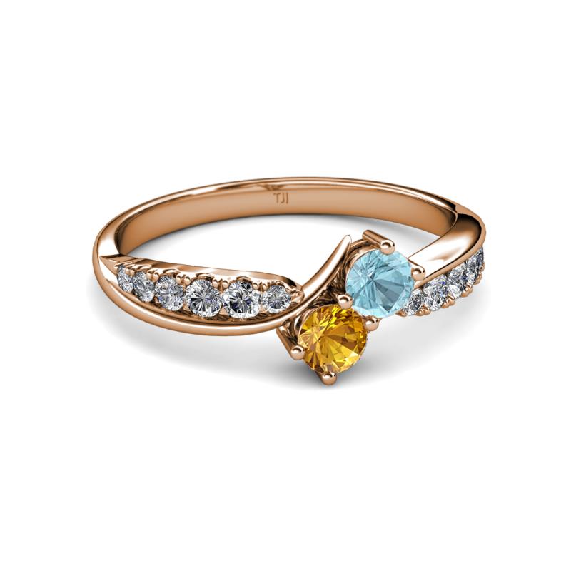 Aquamarine and Citrine 2 Stone with Side Diamonds Bypass Engagement Ring 0.70 ct tw in 14K Rose Gold. More Details ...