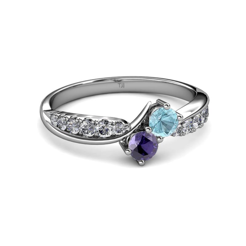 Aquamarine and Iolite 2 Stone with Side Diamonds Bypass Engagement Ring 0.70 ct tw in 14K White Gold. More Details ...