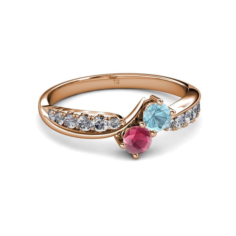 Aquamarine and Rhodolite Garnet 2 Stone with Side Diamonds Bypass Engagement Ring 0.82 ct tw in 14K Rose Gold. More Details ...