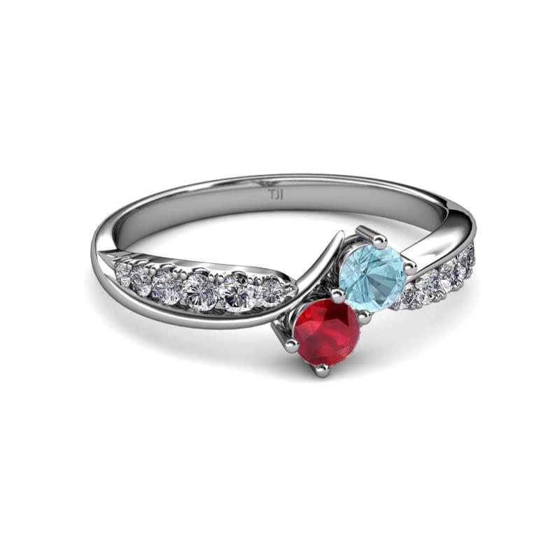 Aquamarine and Ruby 2 Stone with Side Diamonds Bypass Engagement Ring 0.76 ct tw in 14K White Gold. More Details ...