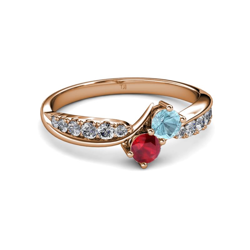 Aquamarine and Ruby 2 Stone with Side Diamonds Bypass Engagement Ring 0.76 ct tw in 14K Rose Gold. More Details ...