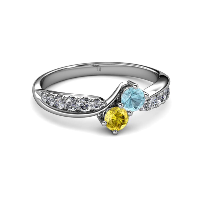 Aquamarine and Yellow Sapphire 2 Stone with Side Diamonds Bypass Engagement Ring 0.76 ct tw in 14K White Gold. More Details ...