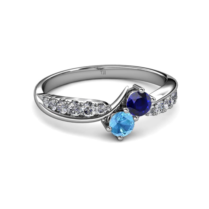 Blue Sapphire and Blue Topaz 2 Stone with Side Diamonds Bypass Engagement Ring 0.82 ct tw in 14K White Gold. More Details ...