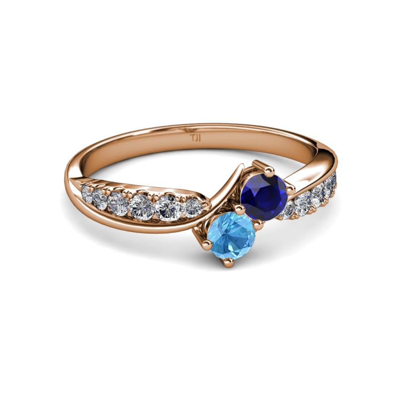 Blue Sapphire and Blue Topaz 2 Stone with Side Diamonds Bypass Engagement Ring 0.82 ct tw in 14K Rose Gold. More Details ...